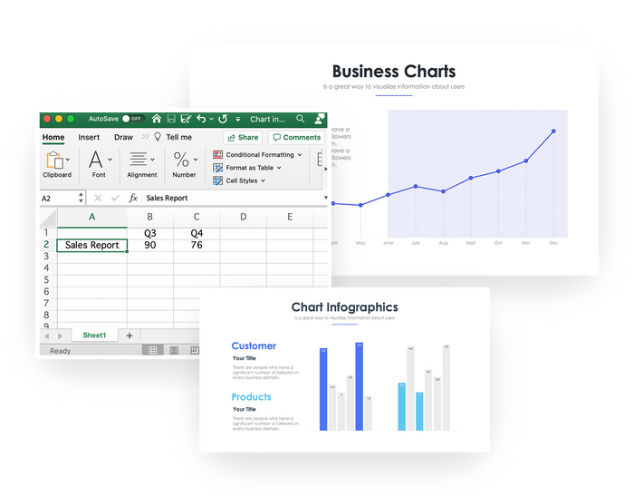 Finish your presentations, reports, and proposals faster than ever with plug-and-play templates.