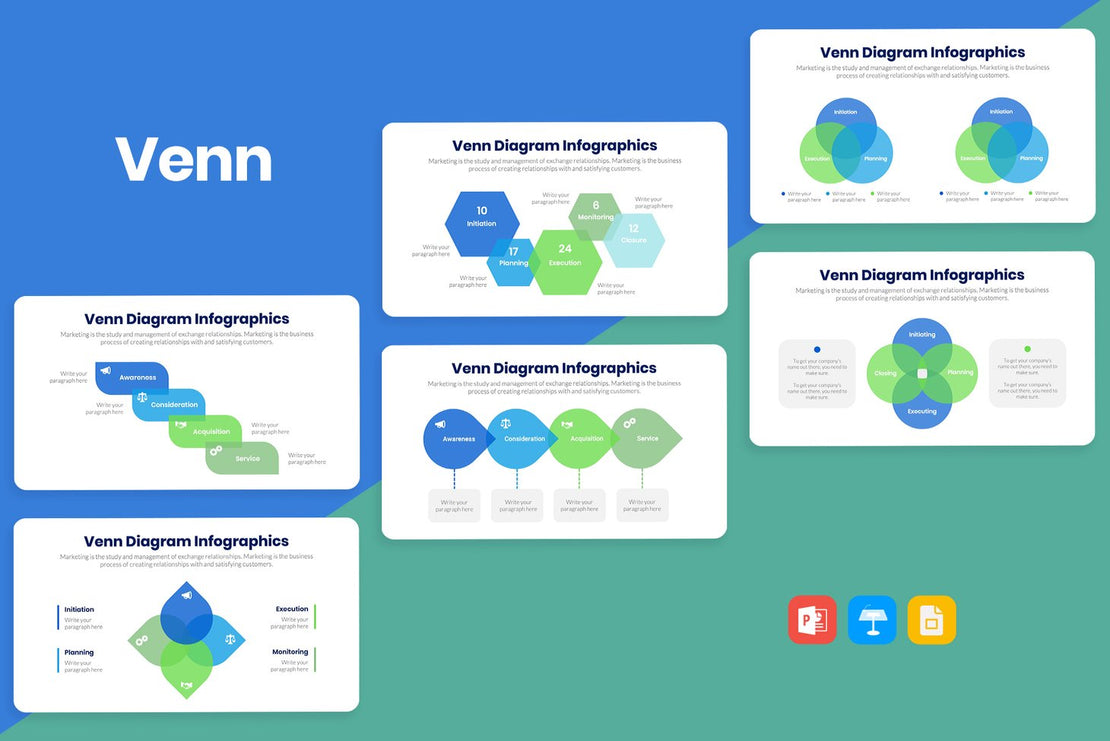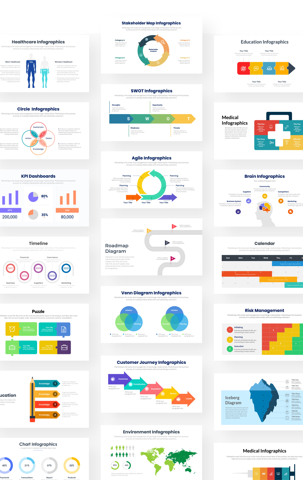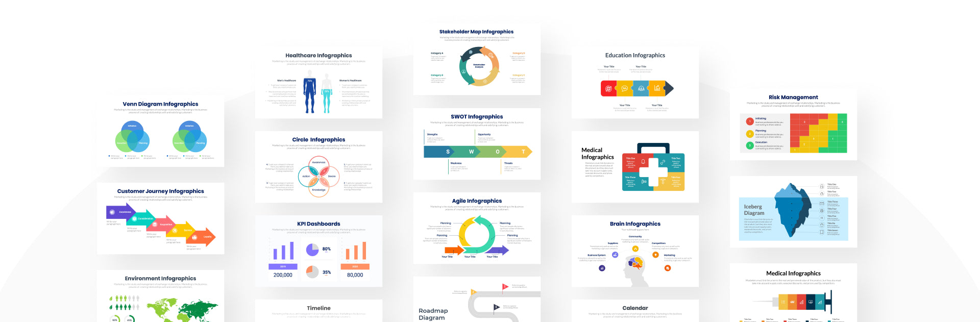 From marketing, business plans, sales funnels, venn diagrams to education, medical, environment, science, real estate, and more - We have a template for almost every niche.