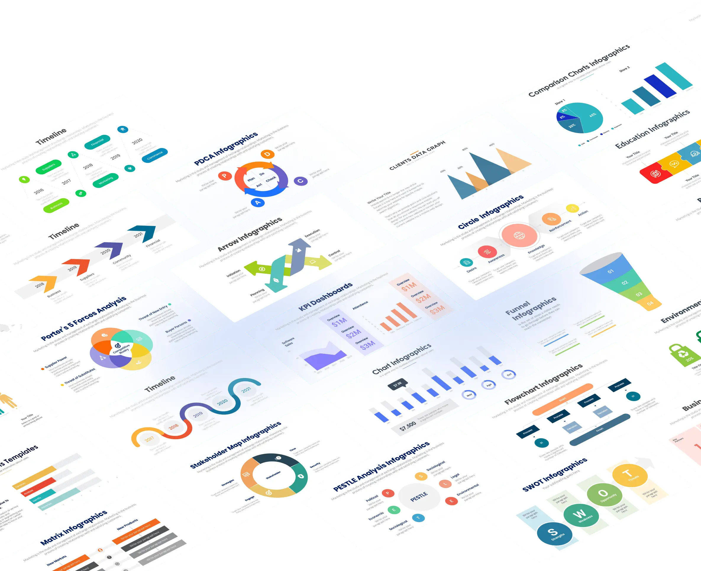 Simply, the best, largest, and most comprehensive library of slides and infographics.