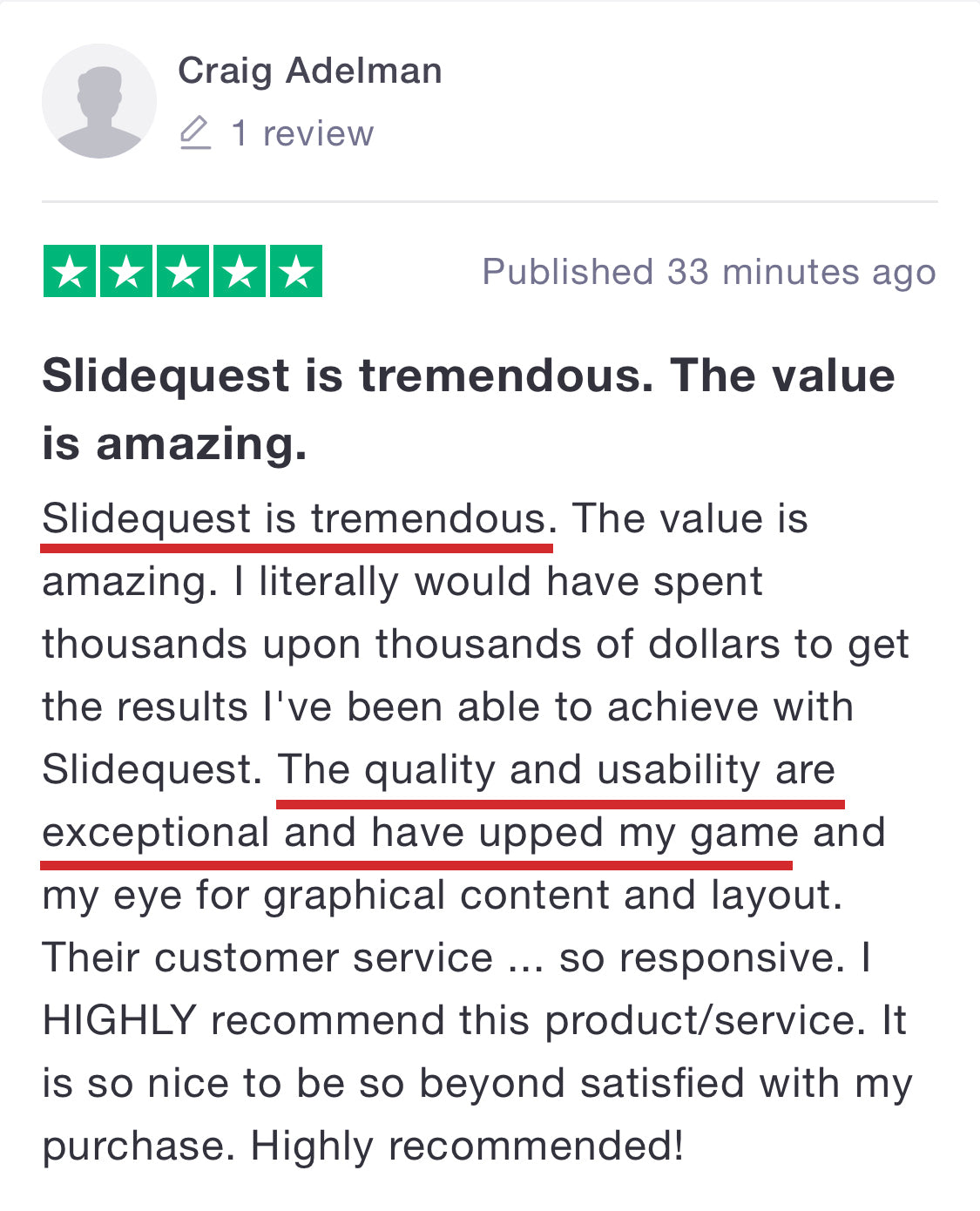 Slidequest gives you access to everything you need to create a sophisticated presentation