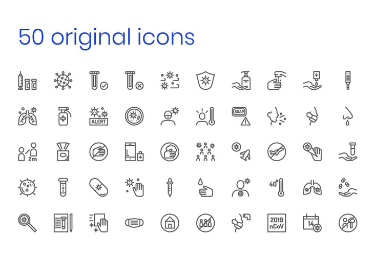 Coronavirus Icons by Slidequest is a set of 50 high-quality illustrations that were designed to help you bring life to your visual aids and make it more appealing. Each one of these icons has outline designs to make your information look minimalistic.